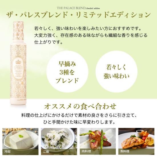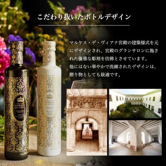 パラシオ・マルケス・デ・ヴィアナは、ボトルだけでなく、味わいにもこだわった逸品です。各品種のオリーブを厳選し、熟練のブレンディング専門家によって調合された、他のブランドには真似できないブレンドを目指した極上のエキストラバージンオリーブオイルです。