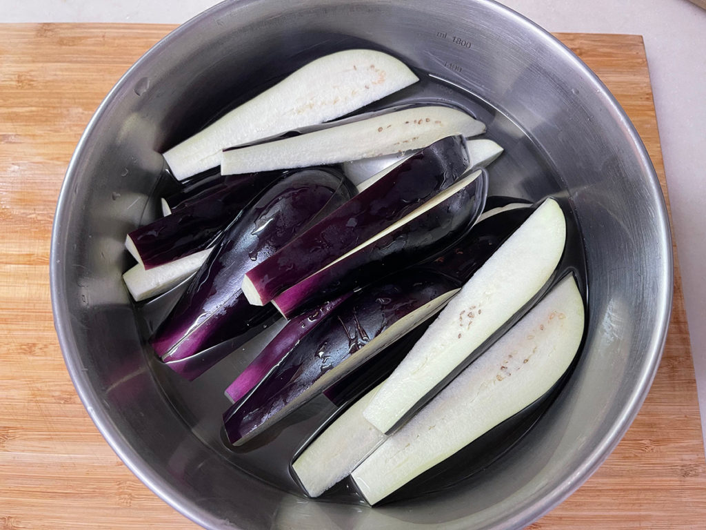 - 水につけ灰汁を抜き、タオルでよく拭きます。