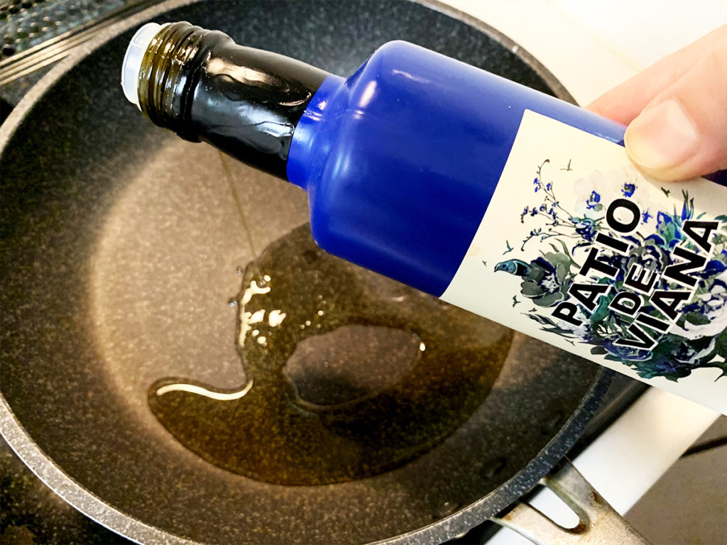 3. フライパンを熱し、オリーブオイルを入れます。
