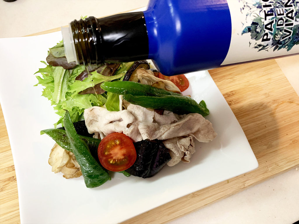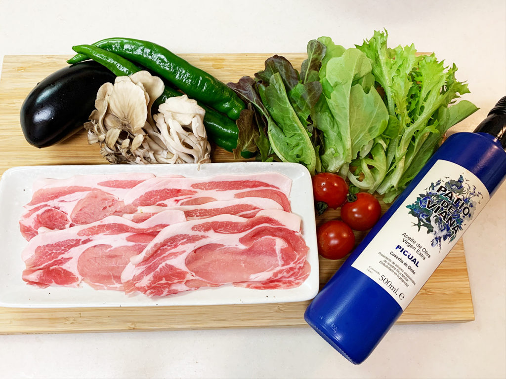 夏にぴったりの冷しゃぶと新鮮な夏野菜を深みのあるオリーブオイルでいただきます。