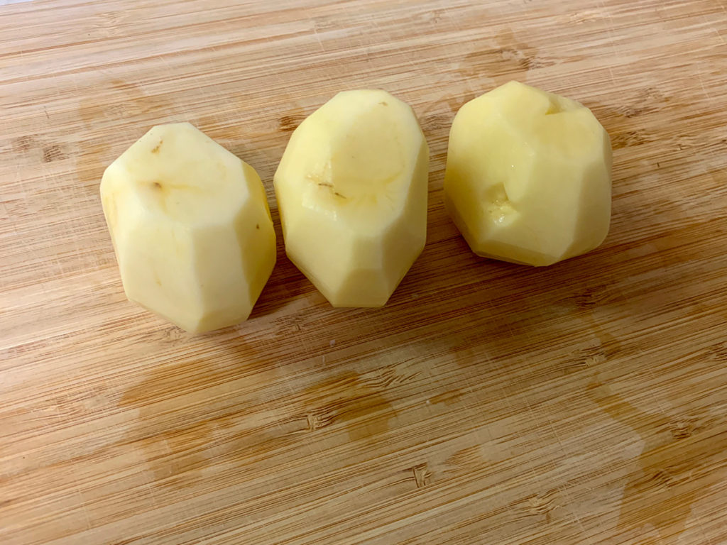 1. ジャガイモの皮をむきます。