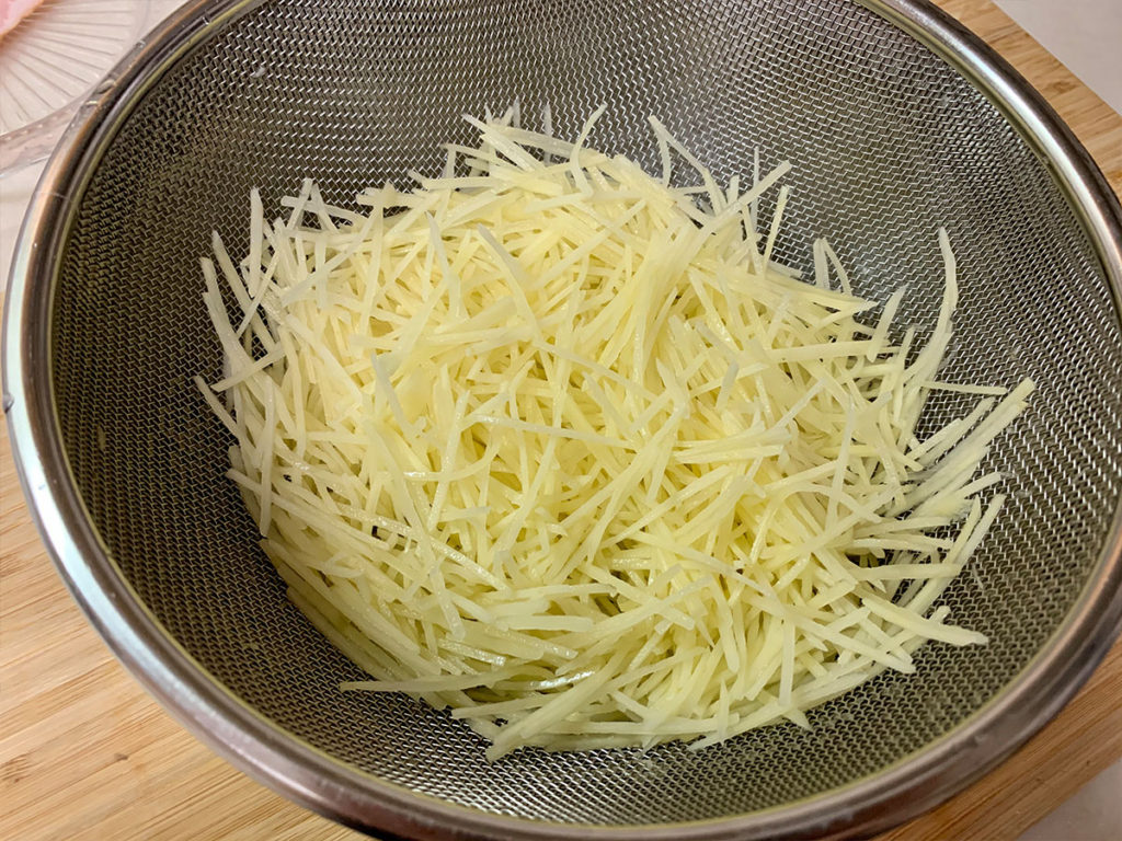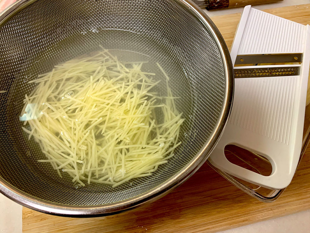 2. スライサーで厚めの千切りにします。