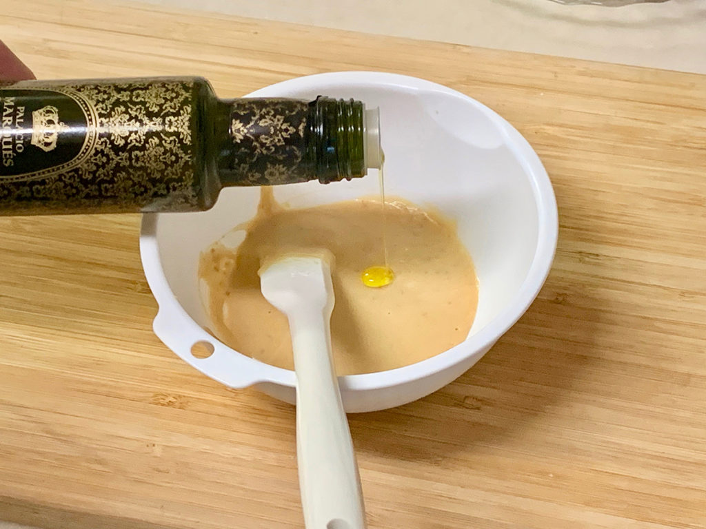 オリーブオイルと味噌、生クリームの濃厚なつけだれで栄養ぎゅっととじこめた