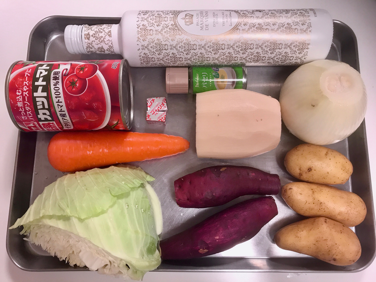 オリーブオイルと根菜トマト煮込みのレシピ