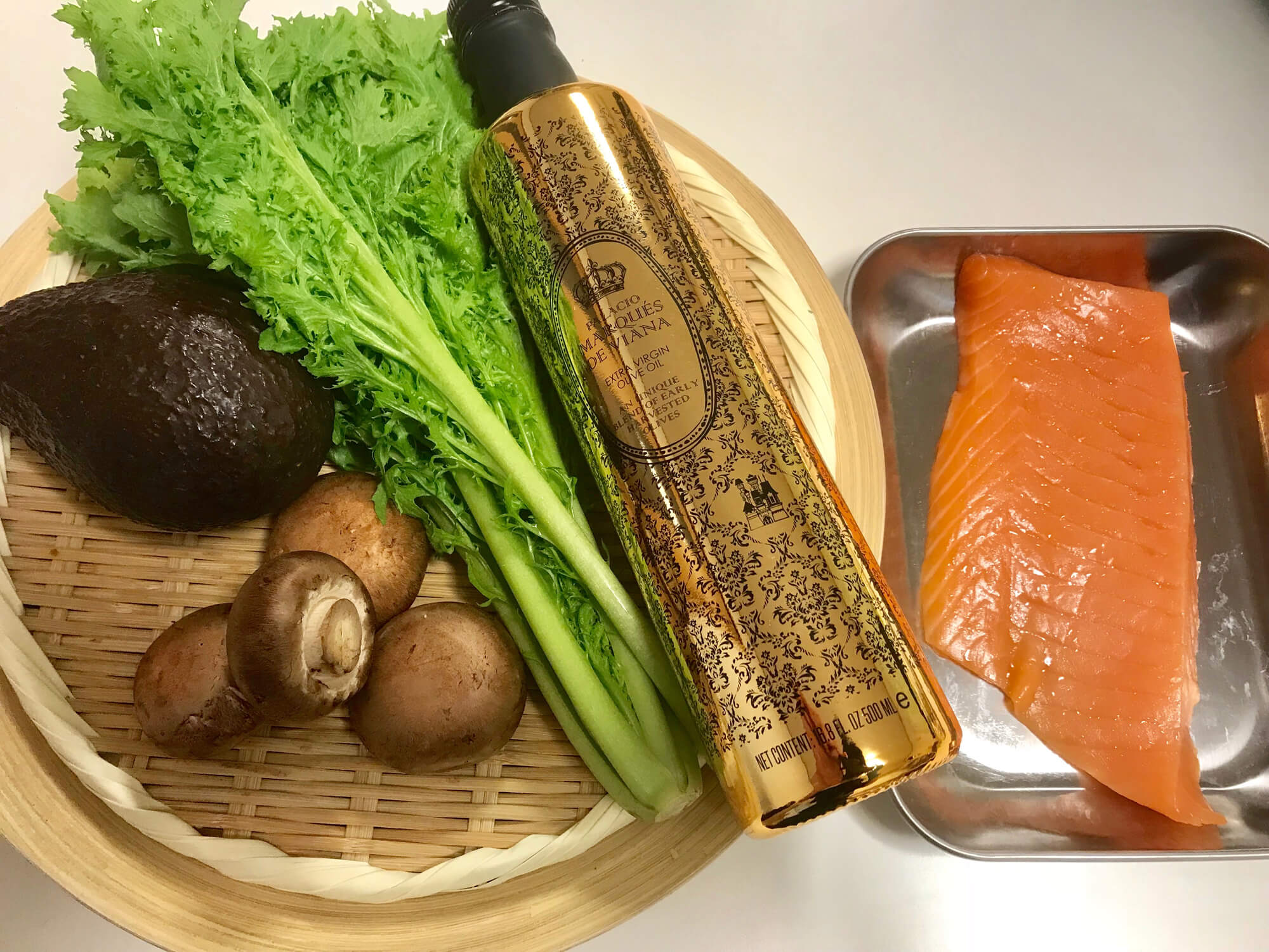 簡単手軽に作れるパーティー料理です。アボカドとサーモン、ブラウンマッシュルームの素材の味を最大限活かせる風味豊かなオリーブオイルと合わせれば、大切なゲストにも喜ばれること間違いなしの味と見た目に仕上がります。
