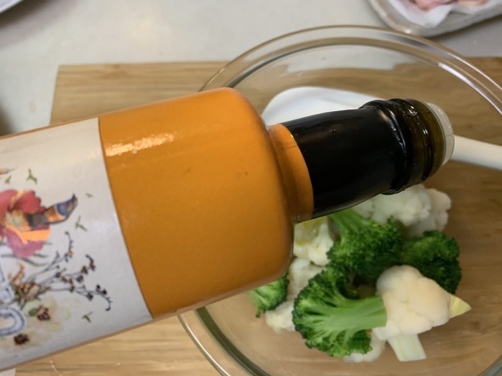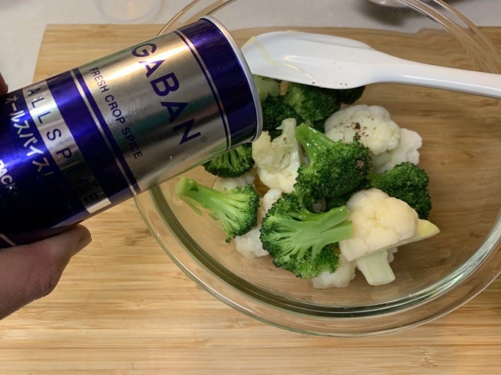 - ブロッコリーのボウルにオールスパイスを入れます。