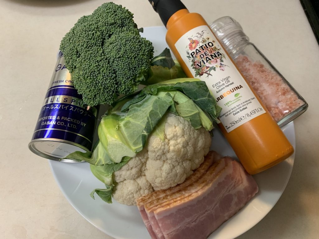 淡白になりがちなブロッコリーとカリフラワーをオリーブオイルとオールスパイスで味付け。ベーコンとの相性もぴったり!!通年で手に入る材料で簡単に出来ます!トレーニーにもオススメです♪