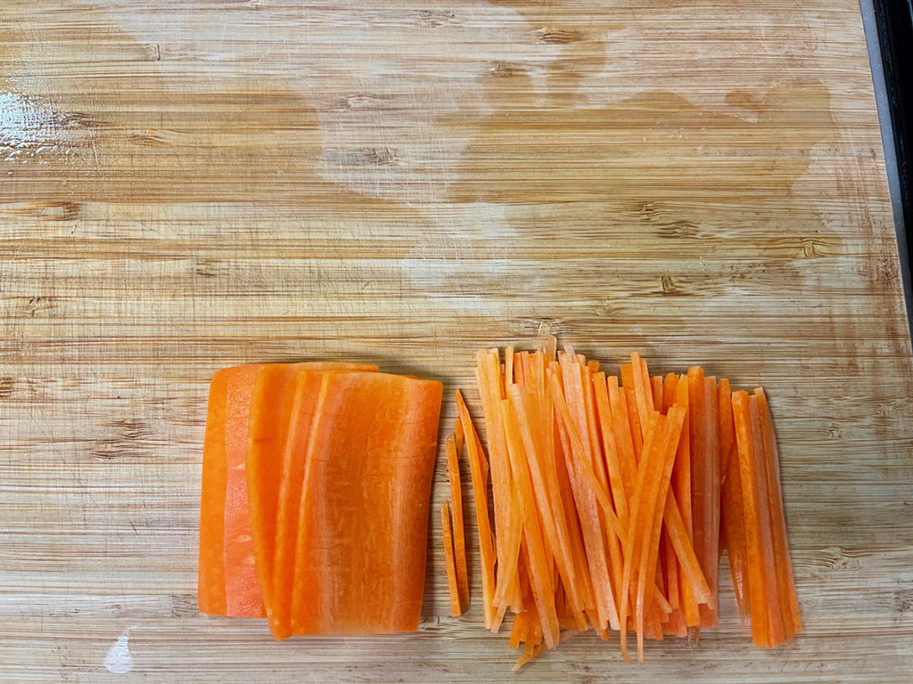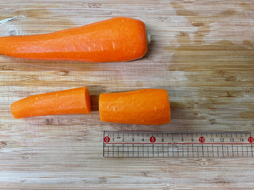 - 人参の皮をむき、6〜7㎝にカットします。