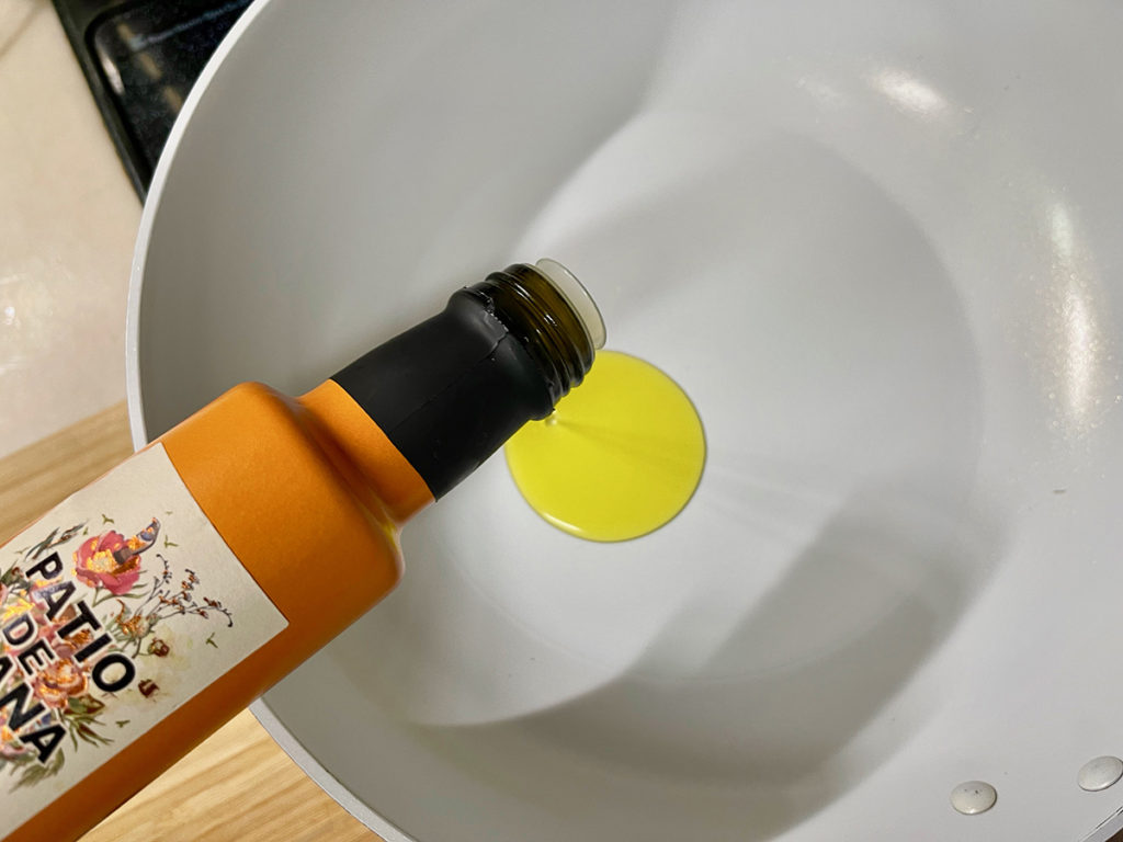 今回のレシピでは、こちらのオリーブオイルを使用しました。どんなお料理に相性がいい万能タイプのオイルです。