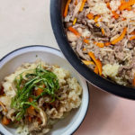 - 仕上げに大葉を千切りにして炊きたてのご飯の上にのせます。