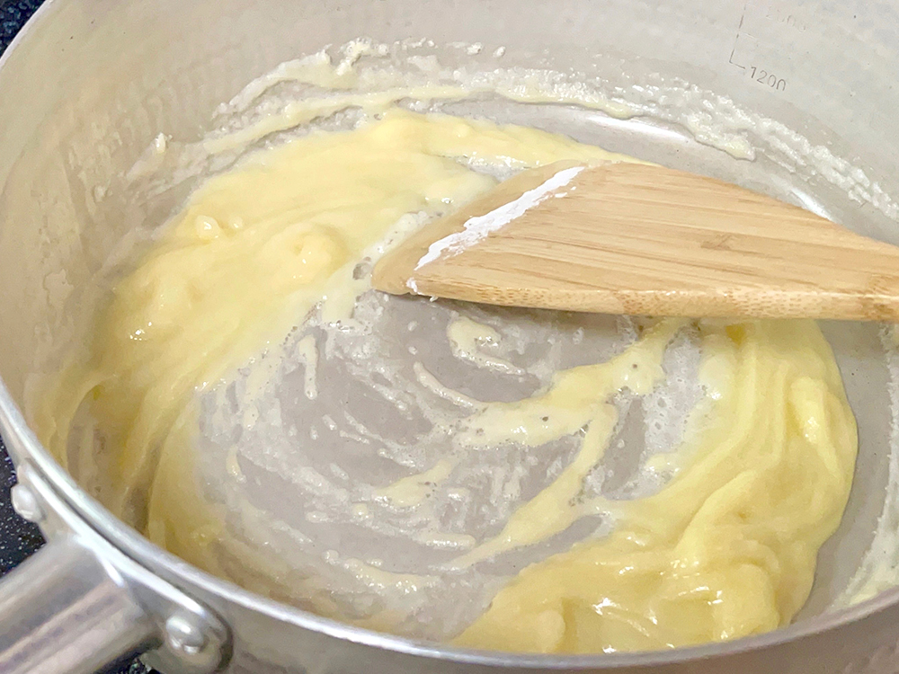 鍋に無塩バターと小麦粉を入れて中火にかけます。