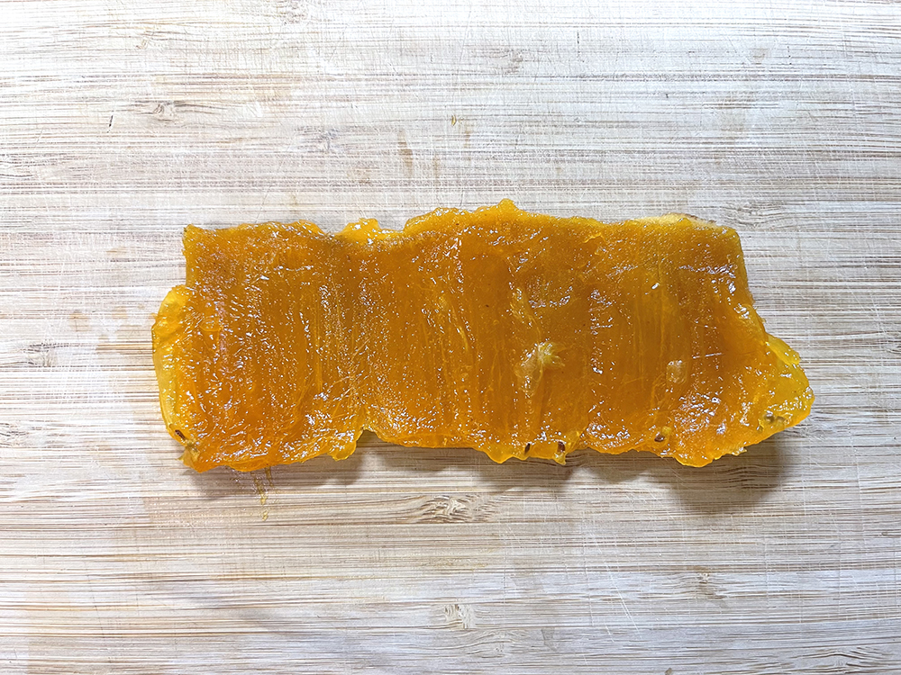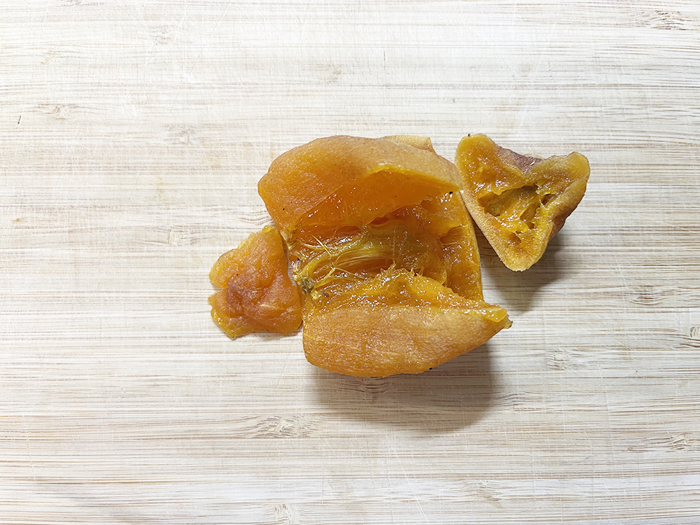 - あんぽ柿を開き、種とワタを取り除きます。