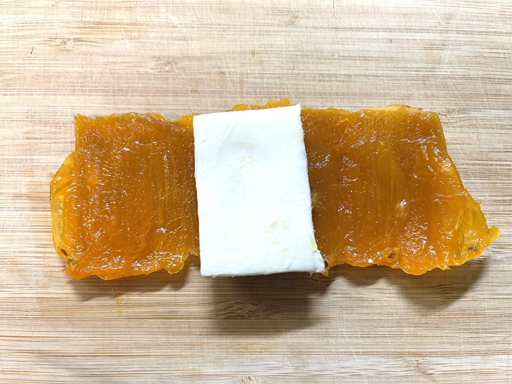 - クリームチーズをあんぽ柿で巻きます。