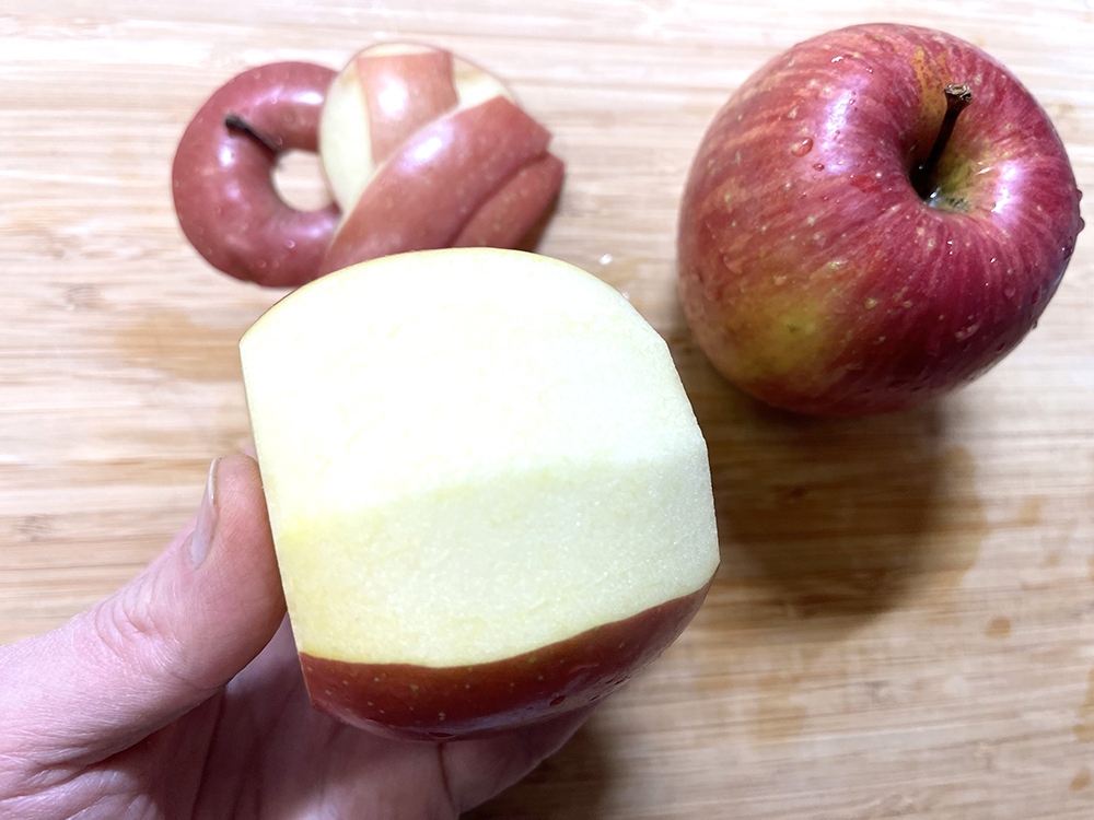 - 林檎の皮を剥きます。