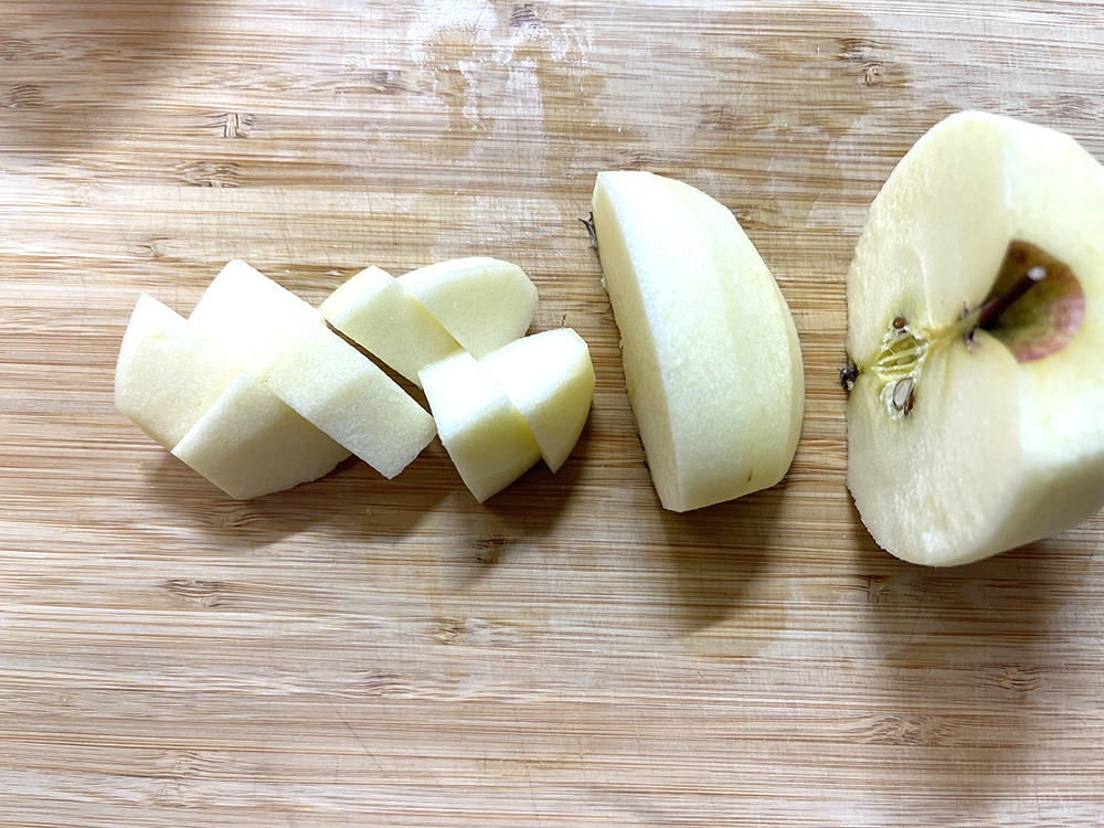 ポイント:煮ると林檎の大きさはひとまわり小さくなるのでやや大きめでも大丈夫です。