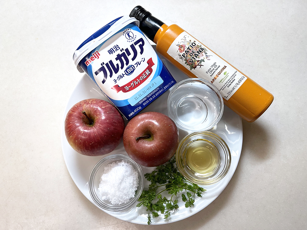 - 塩をひとつまみ入れた塩水で林檎を洗います。