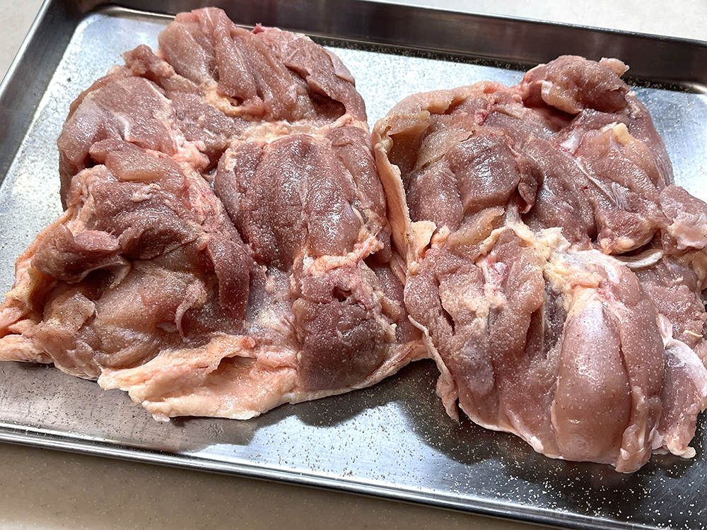 2. 鶏もも肉の両面に塩胡椒をし、約10分置きます。
