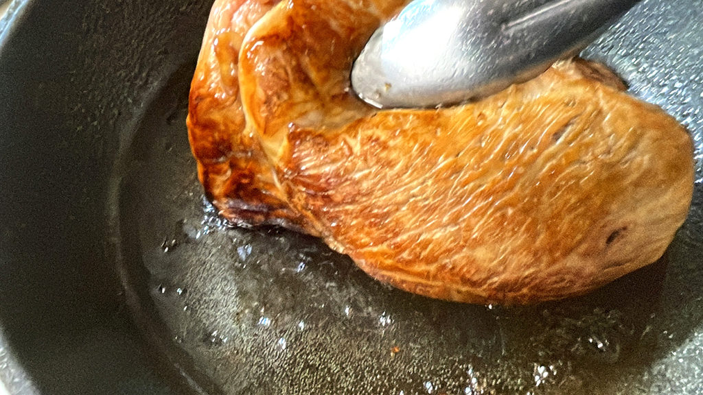 - オリーブオイルをひいたフライパンで焼き色をつけます。