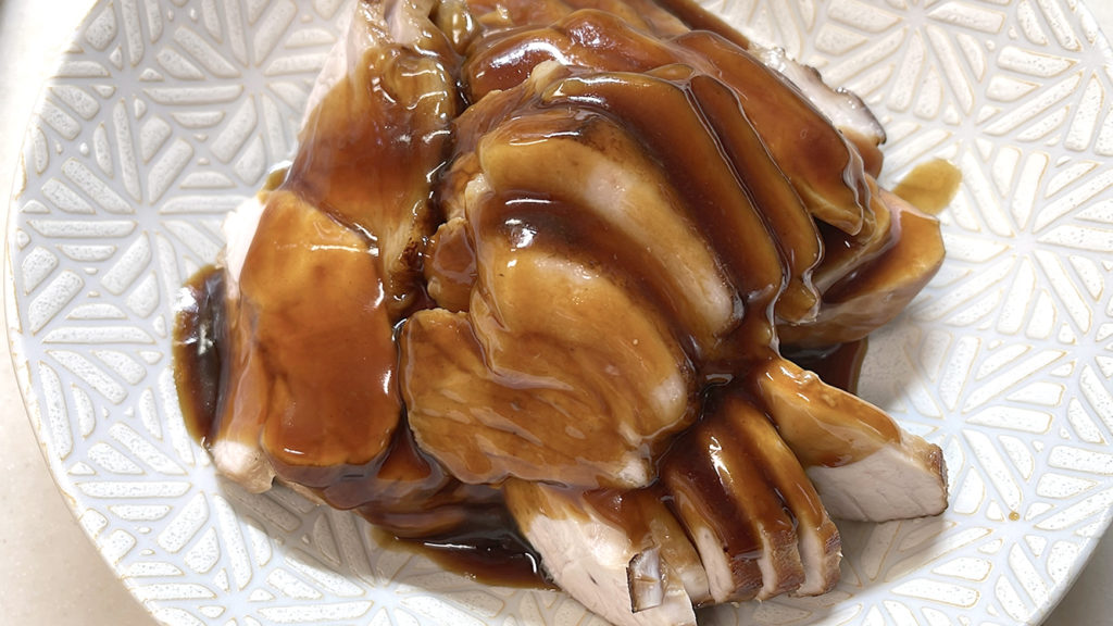 甘とろっとした煮汁が食欲そそる焼き豚チャーシュー!オリーブオイルの風味をつけて丼にしても楽しめます。温玉を乗せていかがでしょう!