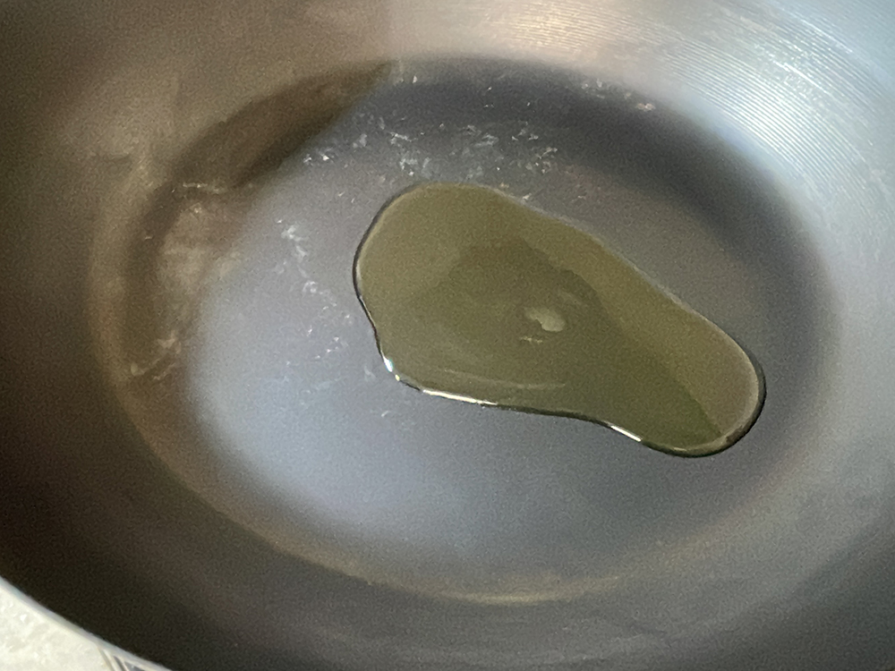 - 完成したらオリーブオイルを回しかけて完成です。