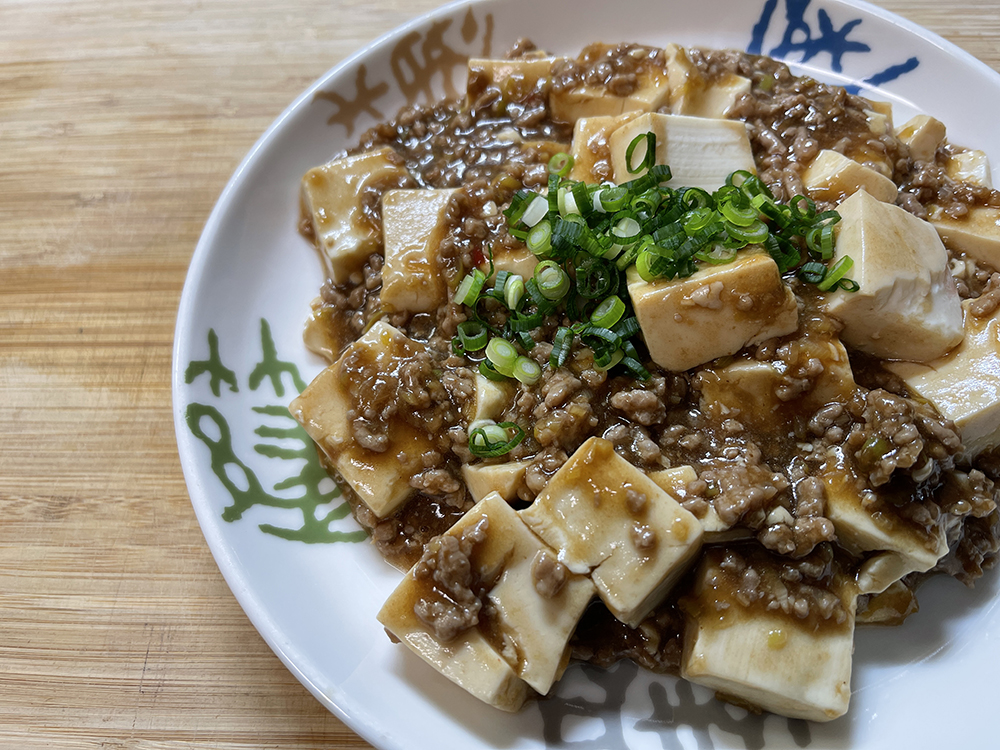 ピリッとした辛さが後を引く麻婆豆腐にオリーブオイルをかけてまろやかに。
