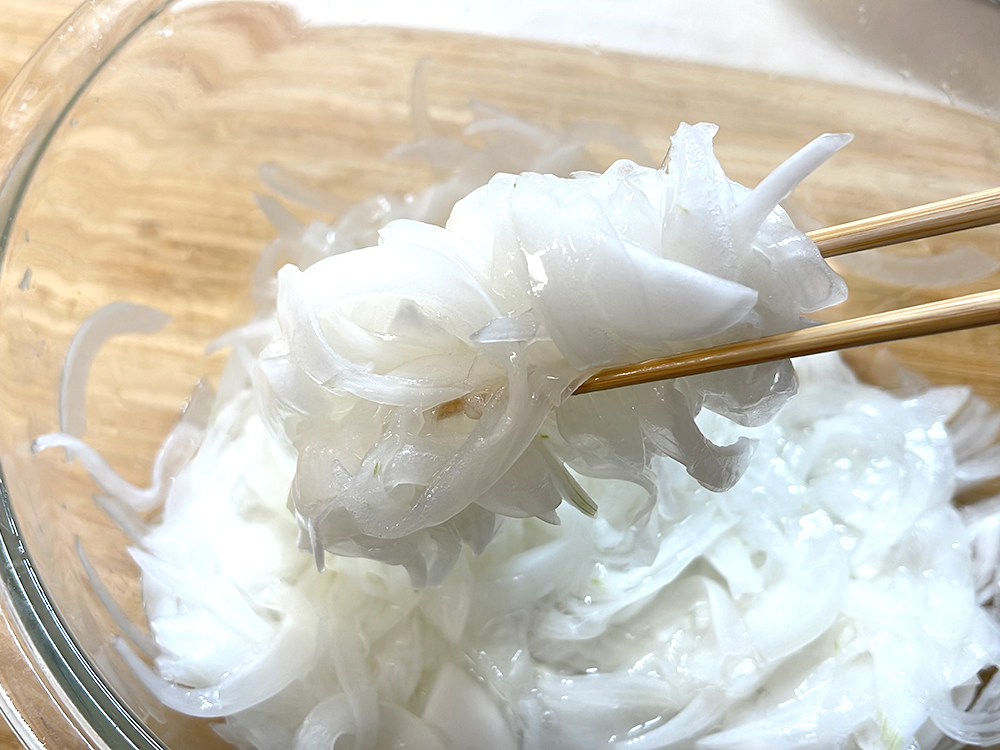 ポイント:水分を抜くことで出汁の味が染み込みやすくなります。