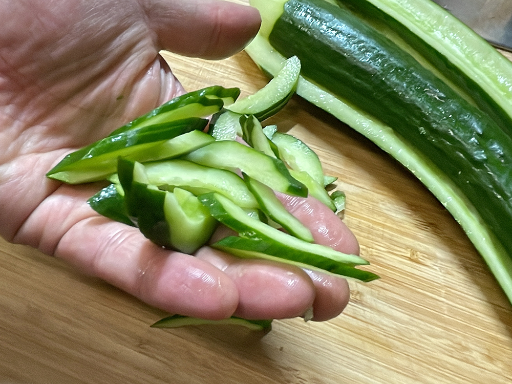 強くもむときゅうりが割れてしまうのでご注意ください。