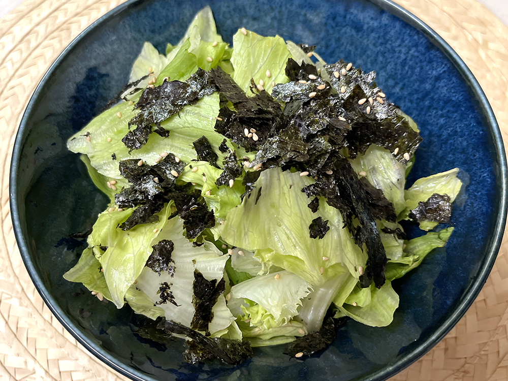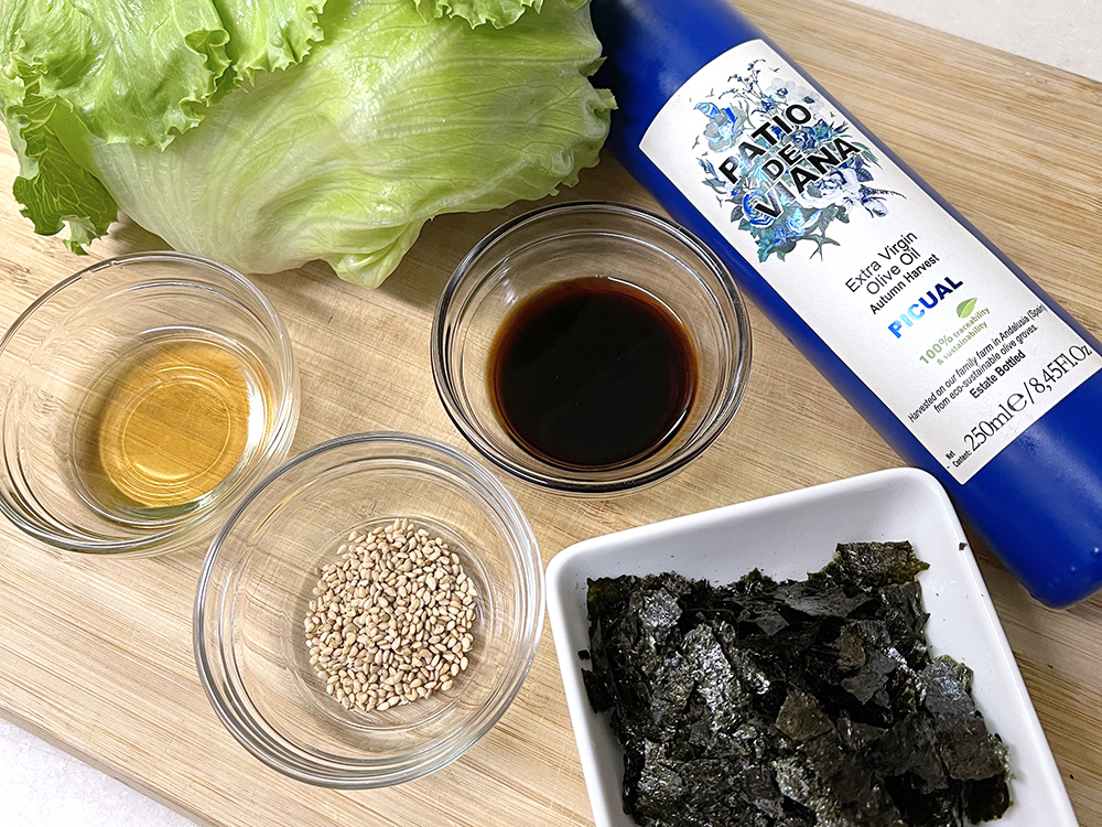レタスをオリーブオイルで楽しむ変わり種レシピ。5分ですぐできて時間のない方にも気軽に作っていただける超簡単ナムルです。普段のサラダ習慣に取り入れてみて下さい。