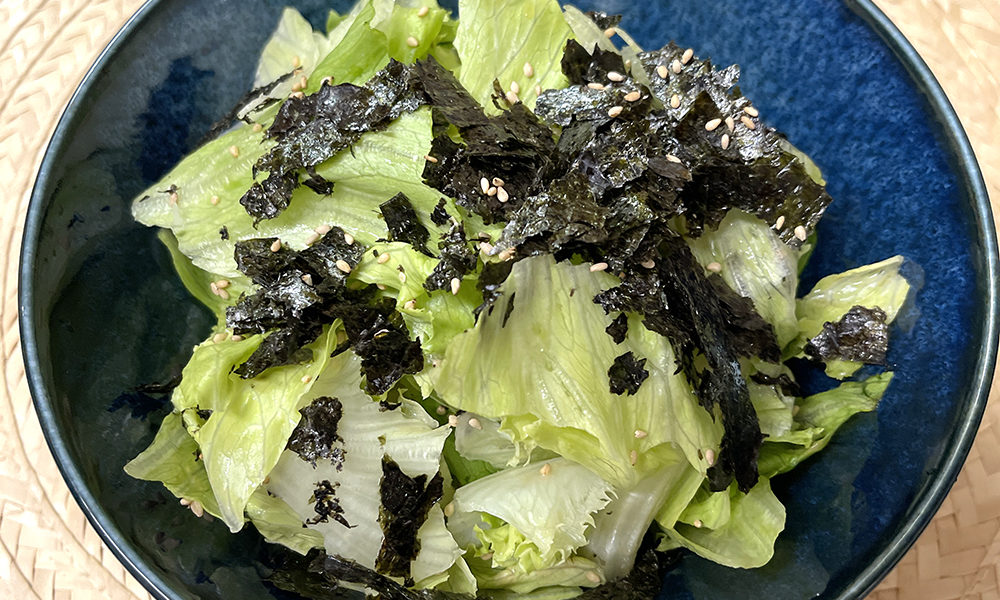 レタスをオリーブオイルで楽しむ変わり種レシピ。5分ですぐできて時間のない方にも気軽に作っていただける超簡単ナムルです。普段のサラダ習慣に取り入れてみて下さい。